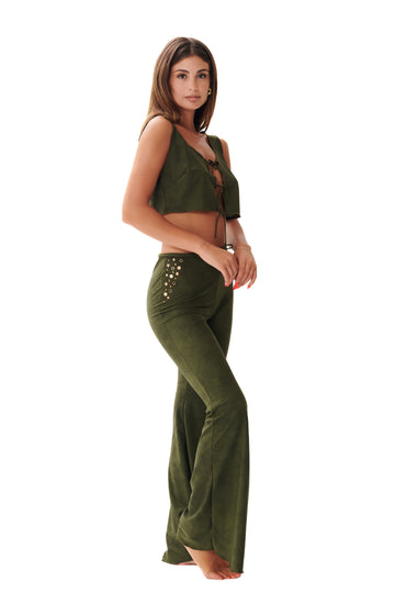 Il set lùz è composto da un top gilet in leggera microfibra scamosciata e chiusura...