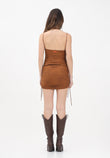 Abito in leggera microfibra scamosciata con bretelle sottili e coulisse laterali.