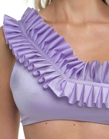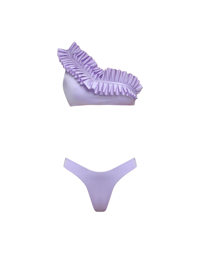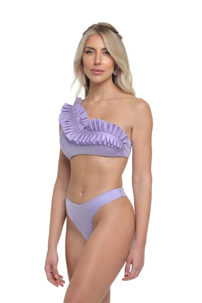 Bikini with one-shoulder band with removable cups with pleated workmanship