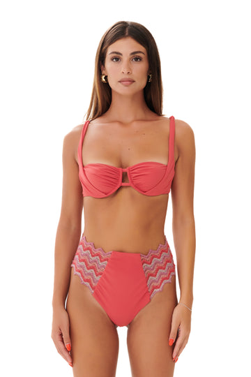 Bikini con Top a Balconcino e coppe  con nodo centrale . Slip con laccetti e...