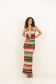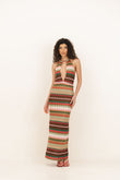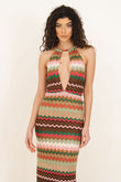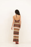 Abito lungo in tessuto ricamato con scollo all’americana e schiena scoperta.