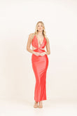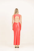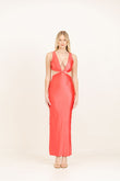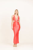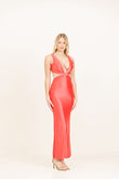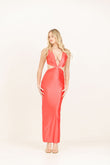 Abito lungo con tagli cut out sul davanti e scollatura sulla schiena. Arricciatura sul fondoschiena per un effetto volume.