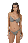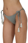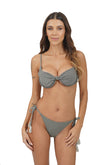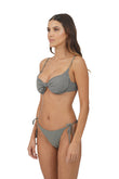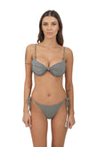 Bikini Con Top A Balconcino Con Nodo Centrale . Slip Con Laccetti E Nappine. Tessuto Lurex Super Brillantinato.