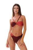 COSTUME DA BAGNO BICOLOR IN LYCRA LUCIDA A DUE PEZZI.