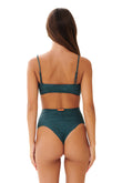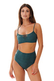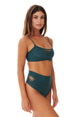 Costume da bagno a due pezzi in pregiata microfibra scamosciata, ultra leggera, composto da top con tagli laser e slip a vita alta taglio laser.