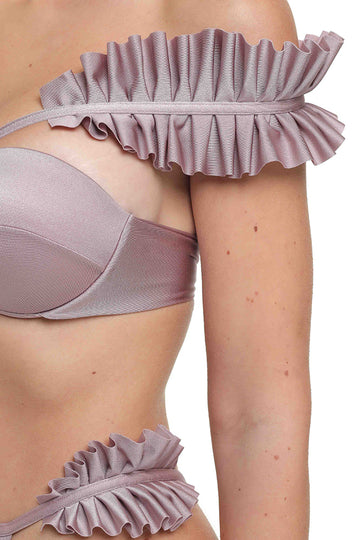 Top con coppe imbottite e ferretto a w con lavorazione a pieghe baciate chiusura regolabile cosi da poter essere indossato in diversi modi per creare piu look in uno.
