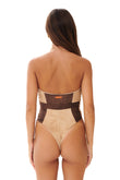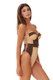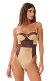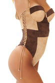 Costume da bagno intero in pregiata microfibra scamosciata, caratterizzato da chiusura con lacci per una vestibilità personalizzata e coppe push-up.