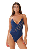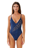 Costume da bagno intero realizzata in pregiata microfibra scamosciata, ultra leggera.