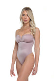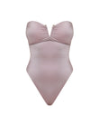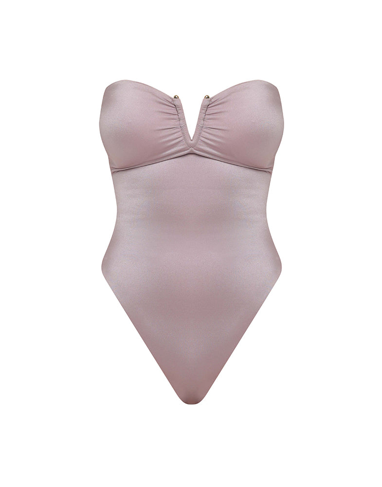 Bikini intero a bustino ultra lucente con arricciatura sul seno, coppe estraibili e ferretto a V ORO. Si adatta a tutte le corporature con ottima vestibilità