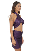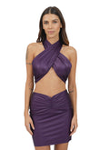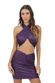 Completo con top ad incrocio e gonna con ariccio al centro. perfetto sia come copricostume che per una serata. Tessuto effetto raso dalla straordinaria lucentezza.